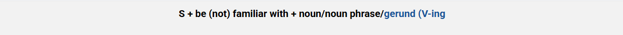 Cấu trúc be familiar with được sử dụng khi muốn diễn tả rằng ai đó có hiểu biết, kinh nghiệm hoặc quen thuộc với một người, sự việc hoặc sự vật nào đó. Nó mang ý nghĩa rằng chủ thể đã từng tiếp xúc, học hỏi hoặc có kiến thức về điều đó.